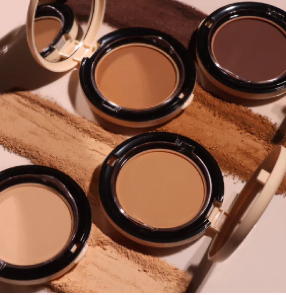 2. قم بمسح أداة التطبيق المرفقة بالبودرة ثم وزعها على الوجه.